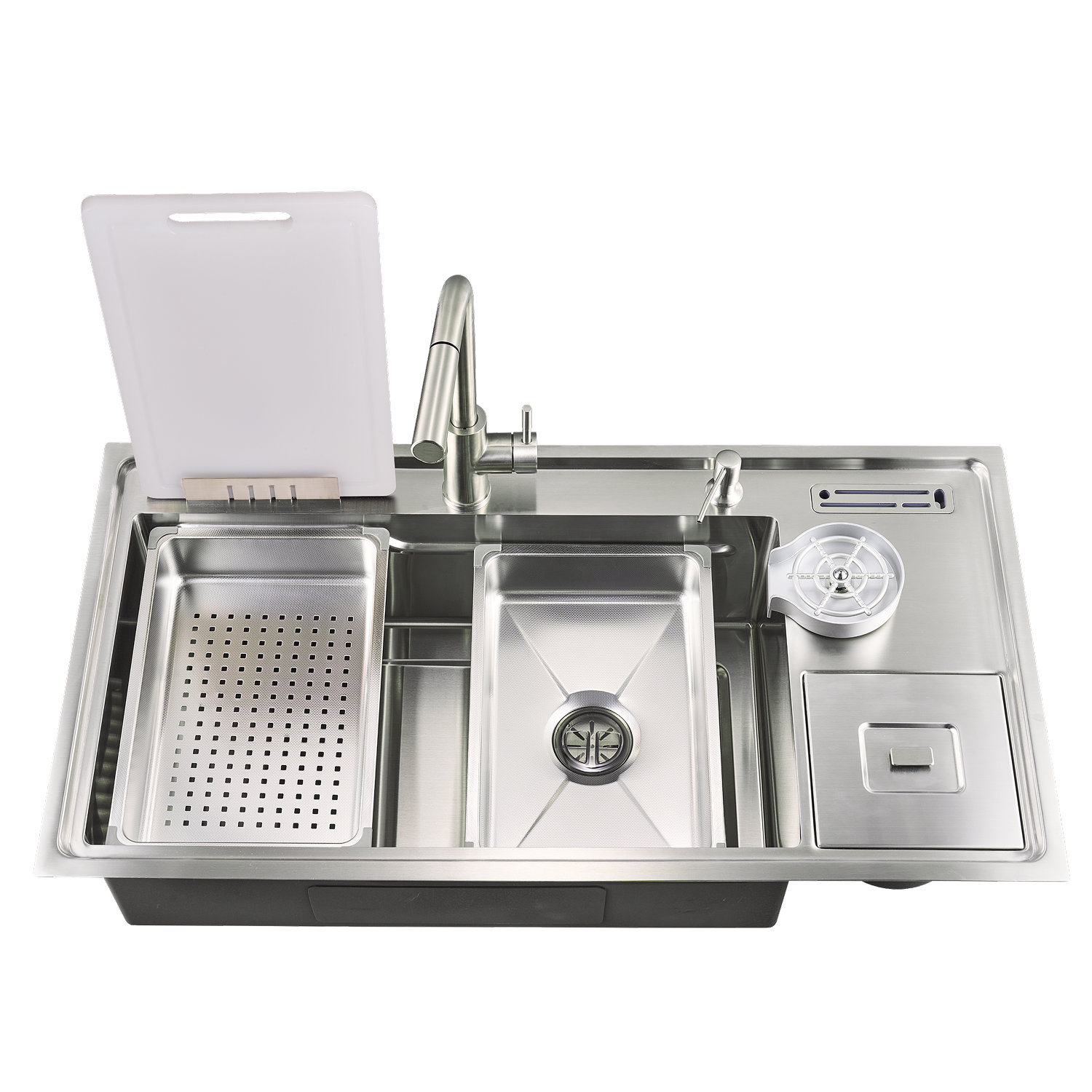 Integrated ledges support accessories like cutting boards and drying racks, turning the sink into a practical workspace. Prep, wash, and dry in one place while maximizing counter space.